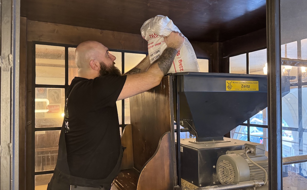 In unserer Zweiwalzen-Schrotmühle werden anfangs verschiedene Malzsorten geschrotet (grob gemahlen). Die richtige Mischung ist dabei von großer Bedeutung. Denn die Zusammensetzung ist später ausschlaggebend für Geschmack und Farbe unserer Biere. Die genaue Rezeptur bleibt allerdings geheim, denn unsere Biere Hell, Kupfer, Weizen oder KoppBock gibt’s natürlich nur bei uns im Chemnitzer Turm-Brauhaus. Soviel kann jedoch verraten werden: Pilsner Malz ist auch dabei.